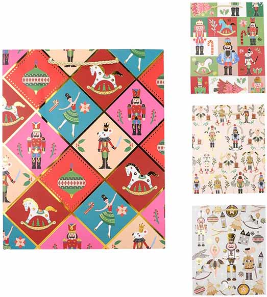 BOLSA DE PAPEL PARA REGALO CON MOTIVOS NAVIDEÑOS DE CASCANUECES DE 40X30X12CM. CON ASA. DE MARKET SUPREM A2667. PRECIO POR UNIDAD.