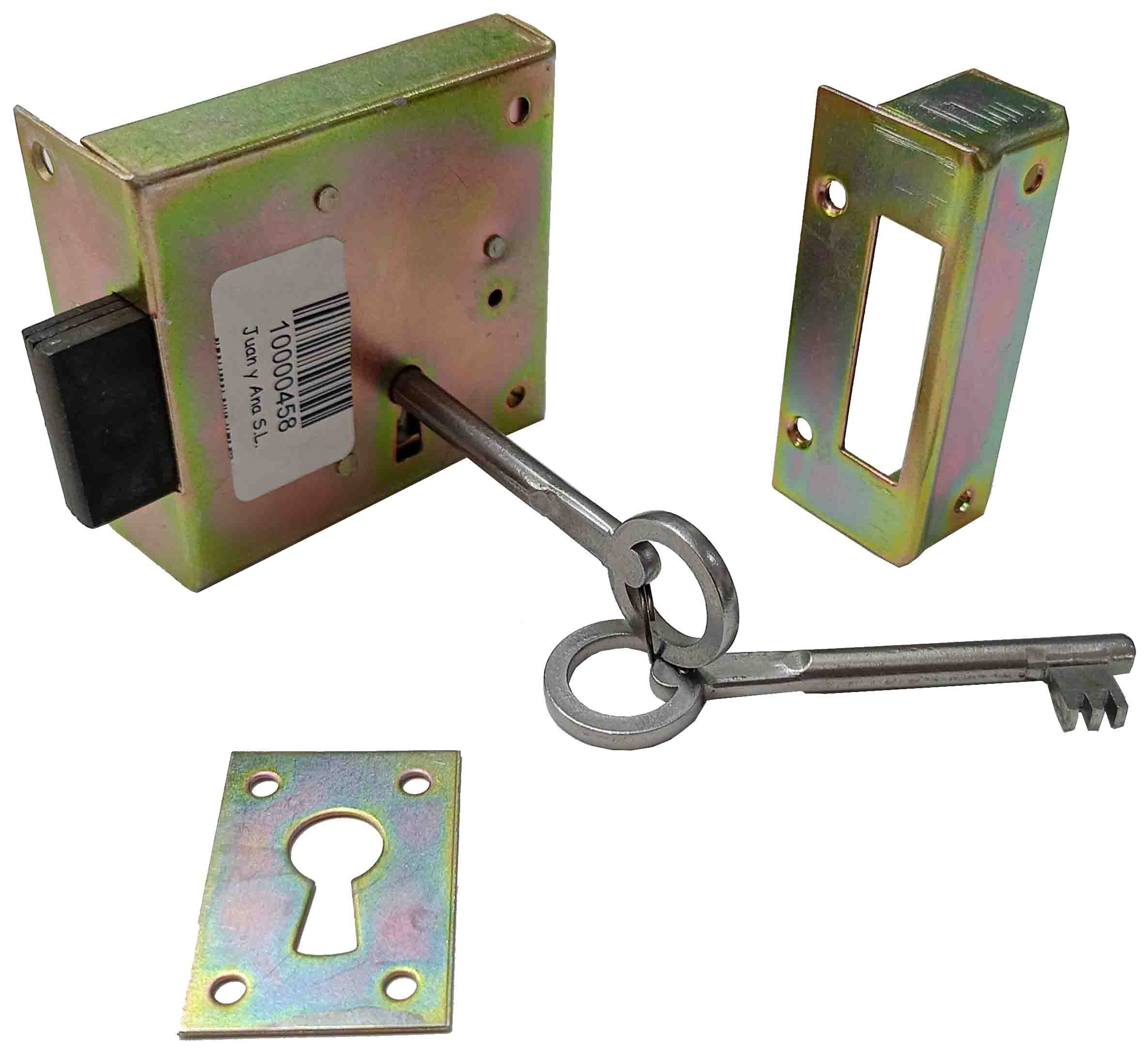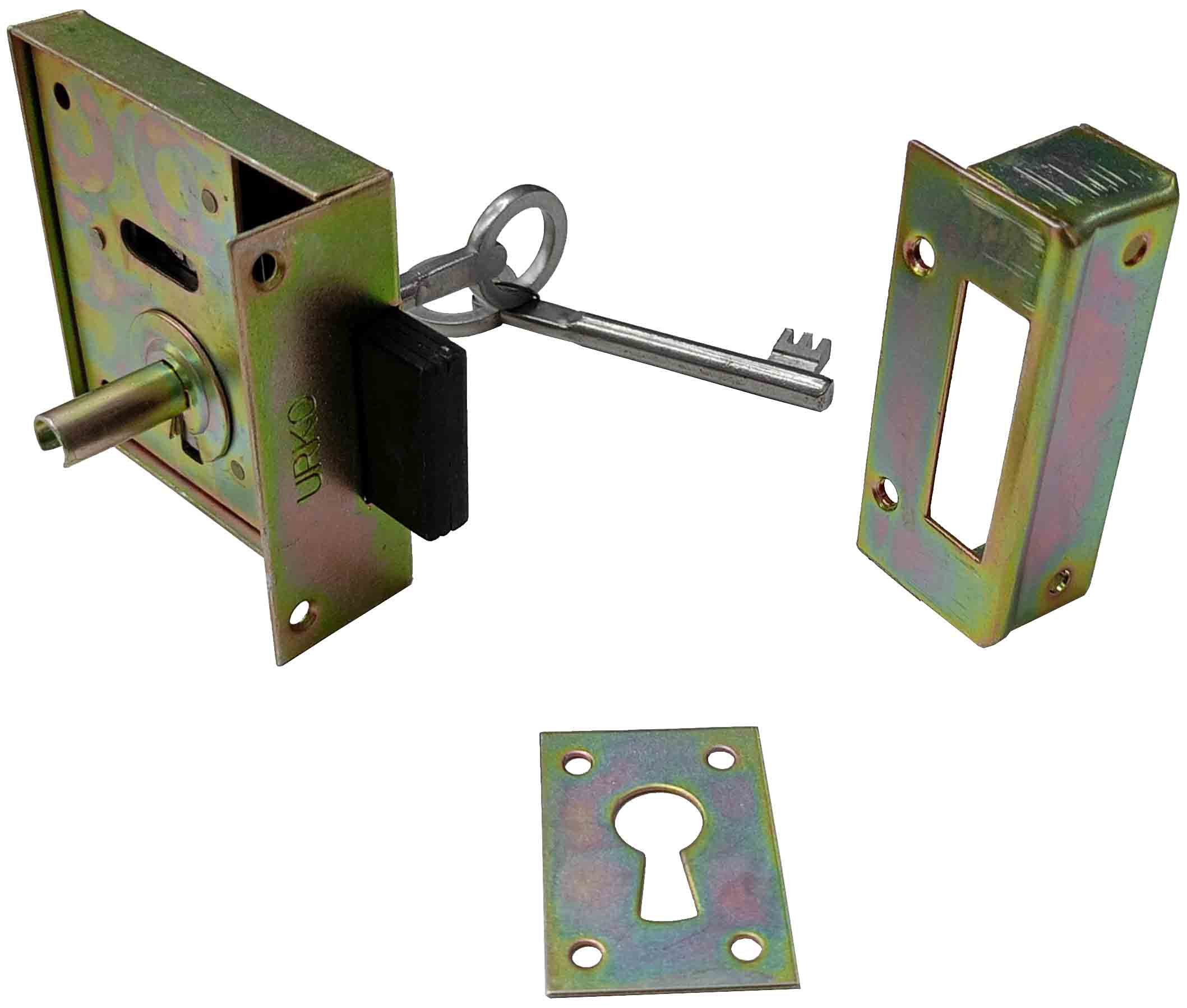 CERRADURA DE SOBREPONER DE 60MM A IZQUIERDAS COMPLETA CON LLAVE GRANDE MARCA URKO 50. PRECIO POR UNIDAD.