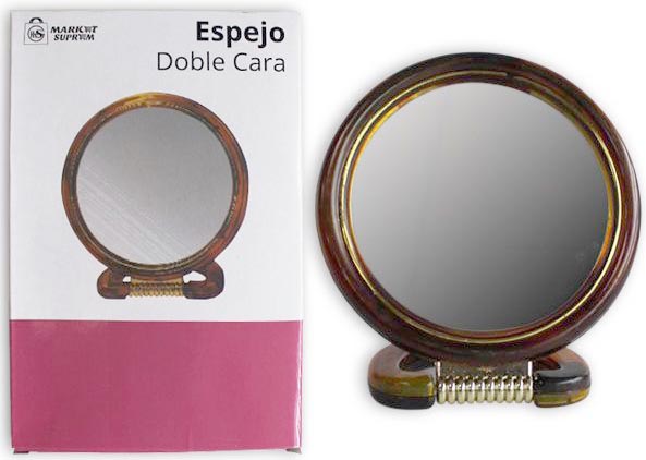 ESPEJO REDONDO DE DOBLE CARA DE Ø 12CM. CON SOPORTE DE PLASTICO DE MARKET SUPREM 71382. PRECIO POR UNIDAD.