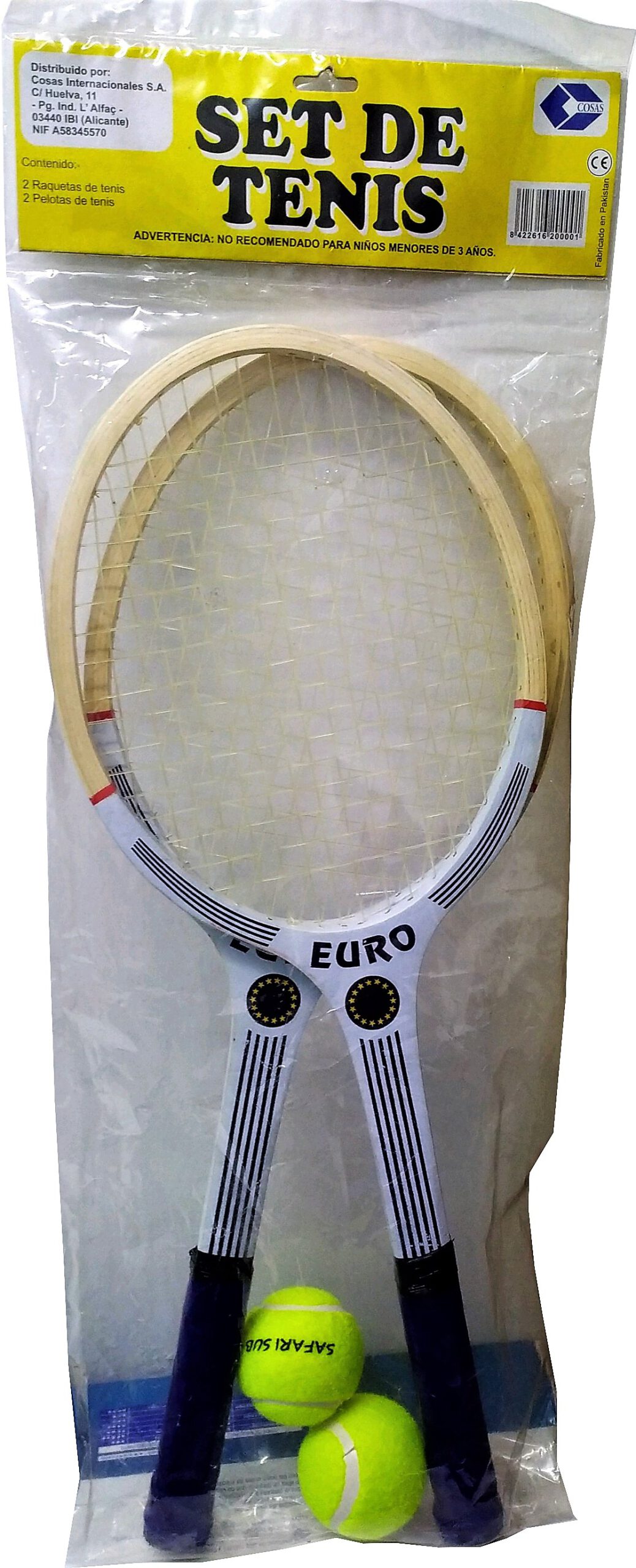JUEGO DE RAQUETAS DE TENIS DE MADERA MAS 2 PELOTAS 20000 COSAS.