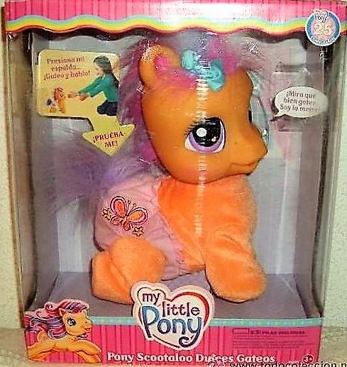 Mi pequeño poni, dulces gateos, de Hasbro. Tiene movimiento y sonido, gatea, habla y canta, es muy gracioso, habla para que el niño o el bebé vayan a cogerlo. Super simpático, muy divertido.