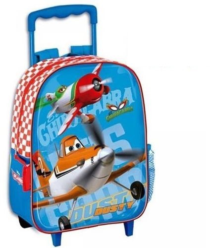 Pequeña mochila infantil con los personajes Dusty y El Chupacabra de la película Aviones de Disney. Cuenta con carro de ruedas y asa extensible asi como con un gran apartado con cierre por cremallera y un pequeño bolsillo lateral de red.