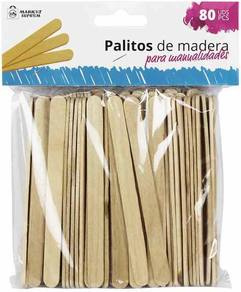PALILLOS DE MADERA TIPO POLOS, PLANOS PARA MANUALIDADES DE 11,4X0,8CM. EN PACK DE 80 UNIDADES.