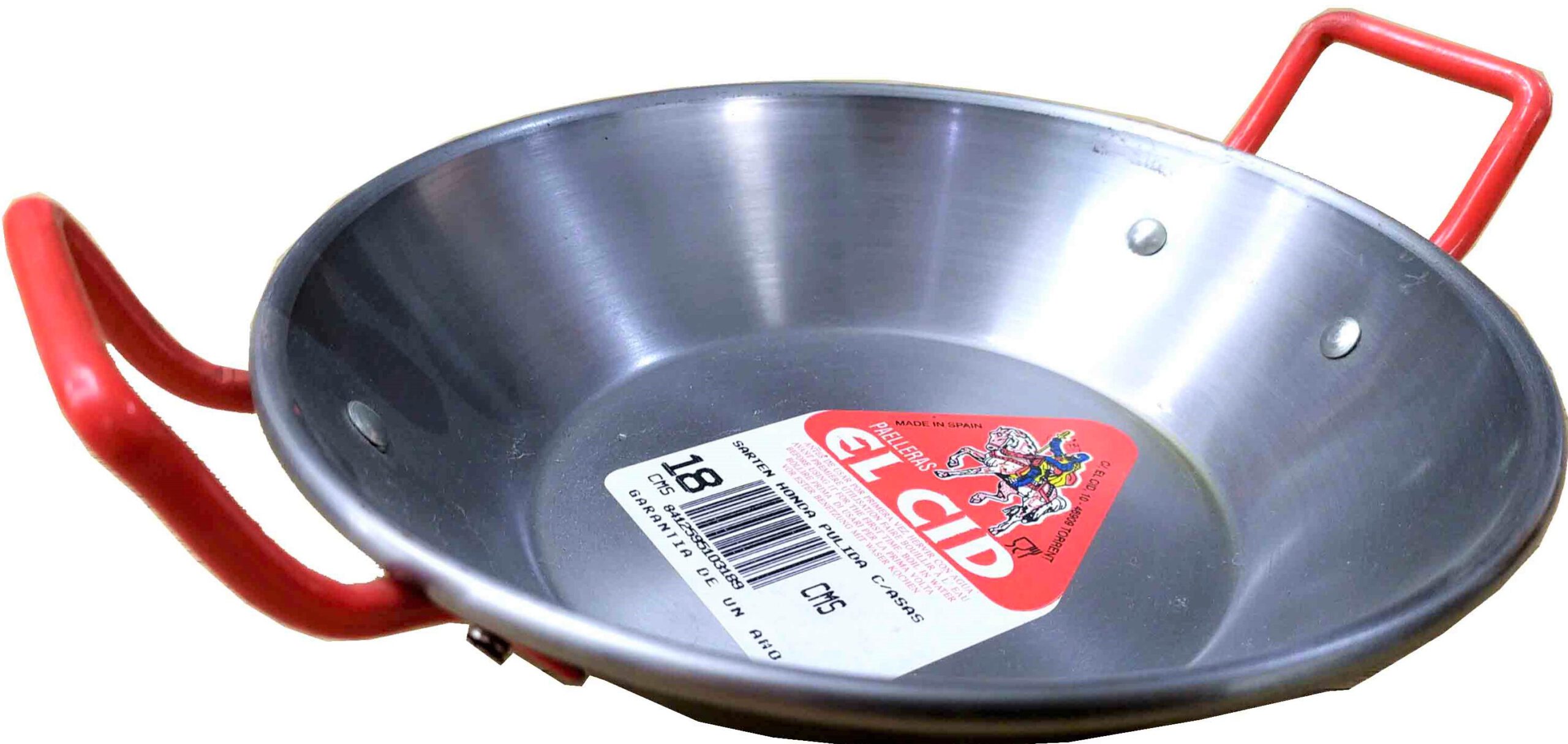 SARTEN DE HIERRO PULIDO HONDA DE 18CM. CON DOS ASAS MARCA EL CID.