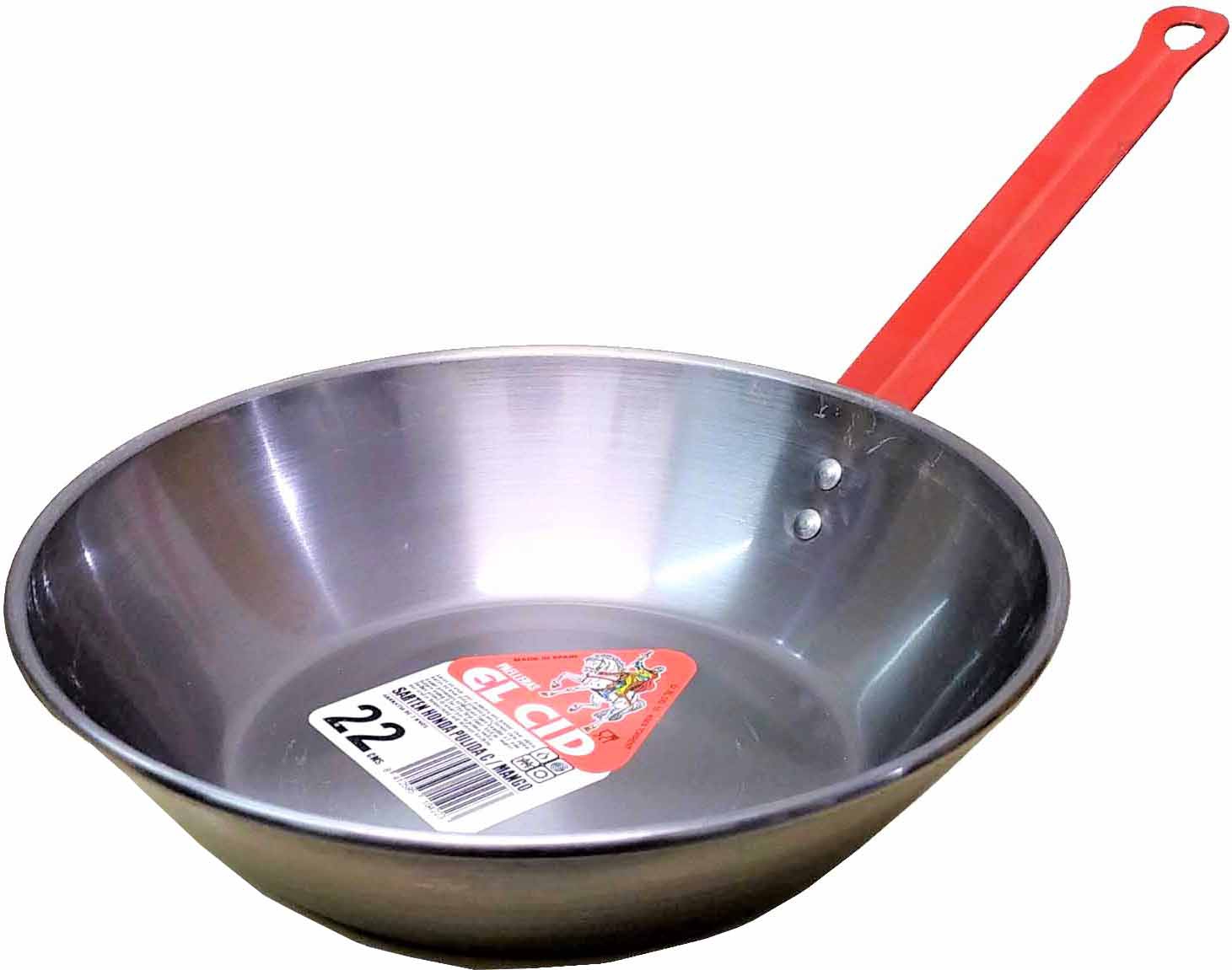 SARTEN DE HIERRO PULIDO HONDA DE 22CM. CON MANGO MARCA EL CID. Antes de usar por primera vez hervir con agua